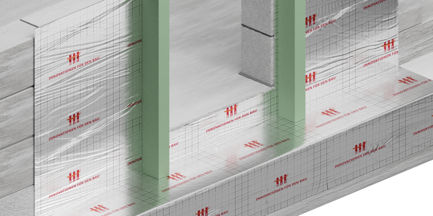 - Um die Radondichtheit bei Anschlüssen und Überlappungen zu gewährleisten, ist hier unser BTF SYSTEMANSCHLUSSSTREIFEN ALU NEW erforderlich.