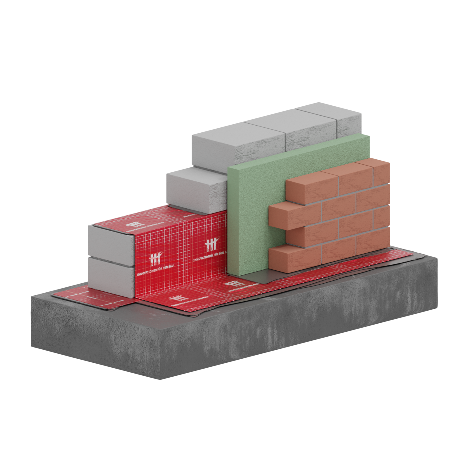 - Die BTF PROCELL F+M ist so an die Mauersperrbahn heranzuführen oder mit ihr zu verkleben, dass keine Feuchtigkeitsbrücken, insbesondere im Bereich von Putzflächen, entstehen können.